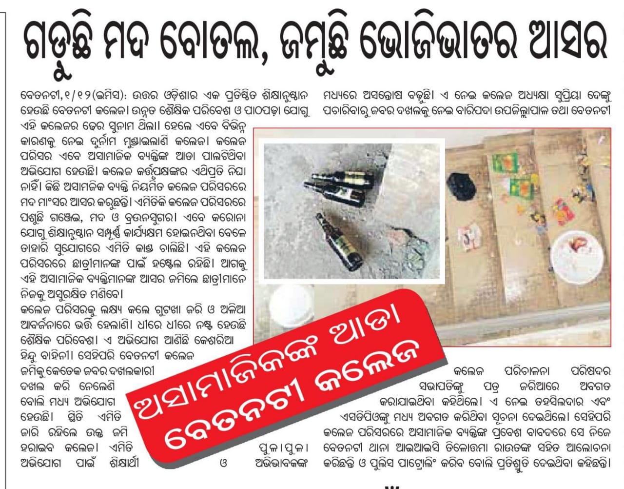 Newspaper headlines of betnoti college
